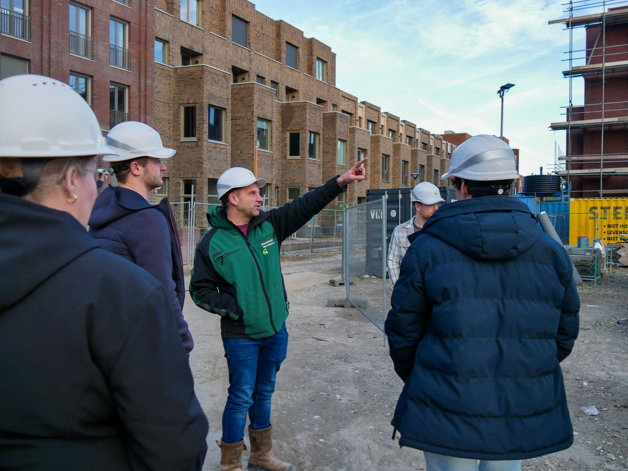 Tijdens het jaarlijkse bouwbezoek op 5 november brachten we samen met collega’s een bezoek aan de bouwplaats van project New Roots in Leidsche Rijn. Daar was goed te zien hoe het project vordert: de contouren van het woongebouw worden steeds zichtbaarder en de duurzame bouwprincipes komen stap voor stap tot leven.
