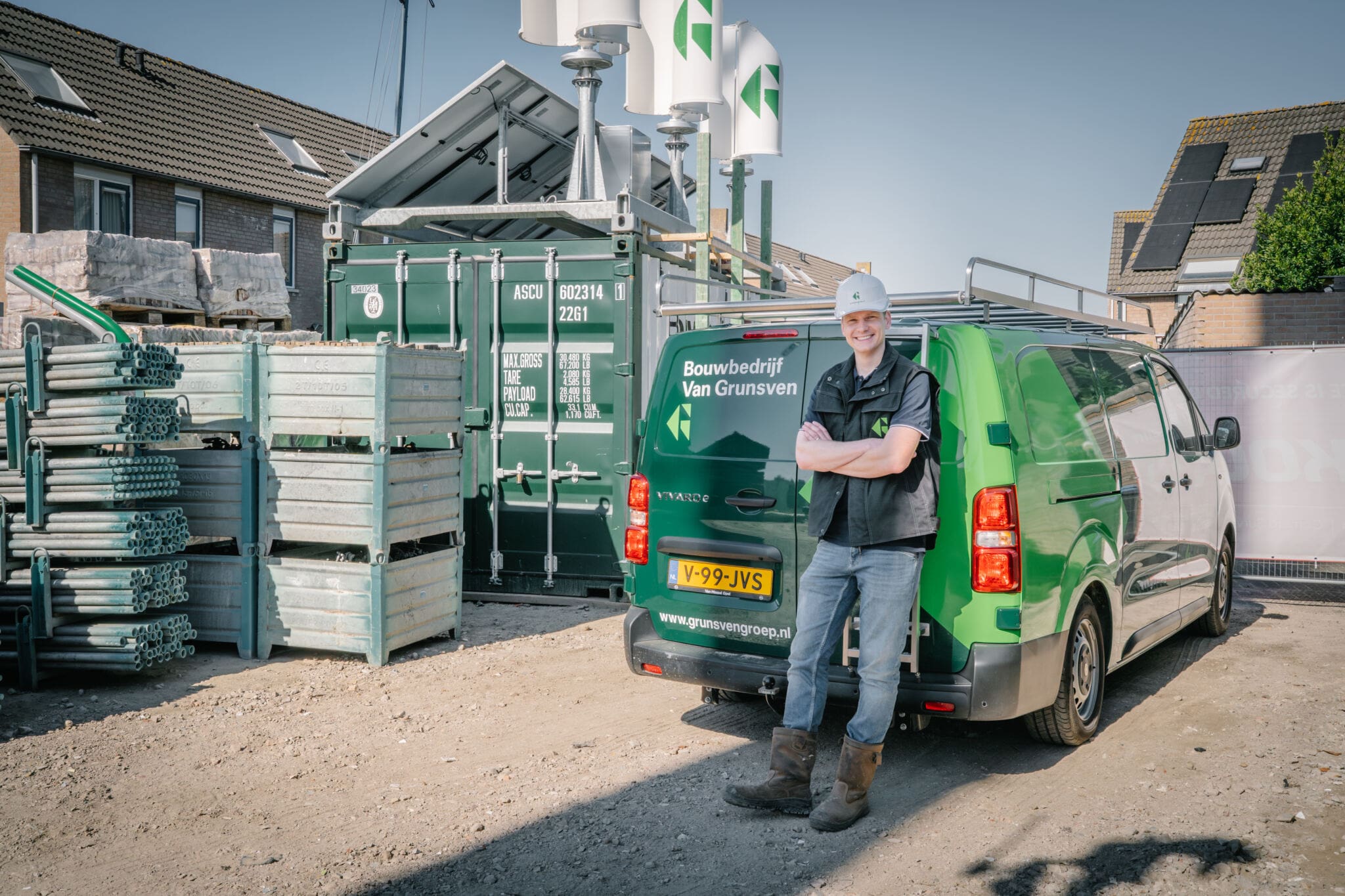 Duurzaamheid speelt een centrale rol. De bestaande bebouwing is circulair gesloopt, waarbij materialen zoals gevelstenen en hout opnieuw worden toegepast in de nieuwbouw. Daarnaast is de bouwplaats volledig emissiearm ingericht, met energie uit zonnepanelen en windwokkels, ondersteund door een batterijsysteem. Transport en uitvoering verlopen grotendeels elektrisch, wat bijdraagt aan een reductie van uitstoot en geluid.