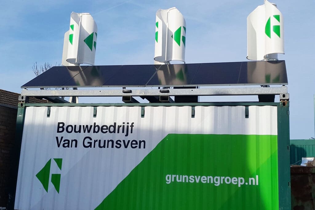 De bouwplaats is volledig emissievrij ingericht. Stroom komt van zonnepanelen en windwokkels op de keet en bouwunits. Een slim batterijsysteem zorgt voor energie, ook als het donker is of de wind wegvalt. Transport gebeurt o.a. met twee elektrische bussen, en op de bouw werken we met elektrisch materieel en gereedschap. Het resultaat: minder uitstoot, minder geluid en een schonere werkomgeving.